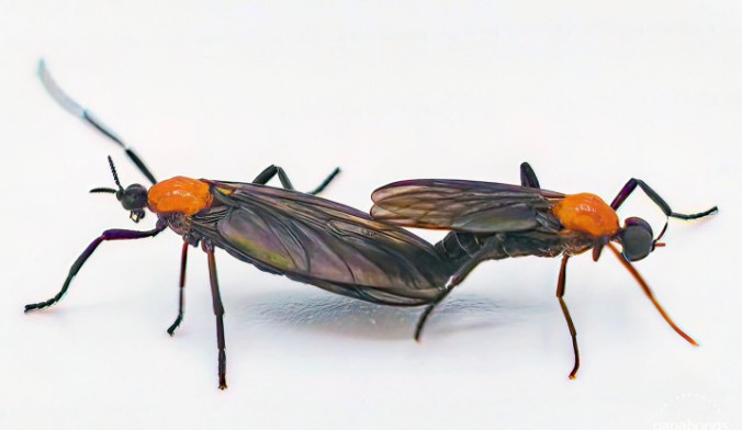 암수 두마리가 마치 한 마리처럼 꼭 붙어 다녀서 러브버그 사랑벌레라고 불립니다. 겉으로 보기에는 이보다 금슬이 좋을 순 없습니다. 성충이 되면 암수 꼬리를 맞대고 붙어 다니면서 먹이도 먹고 이동합니다.