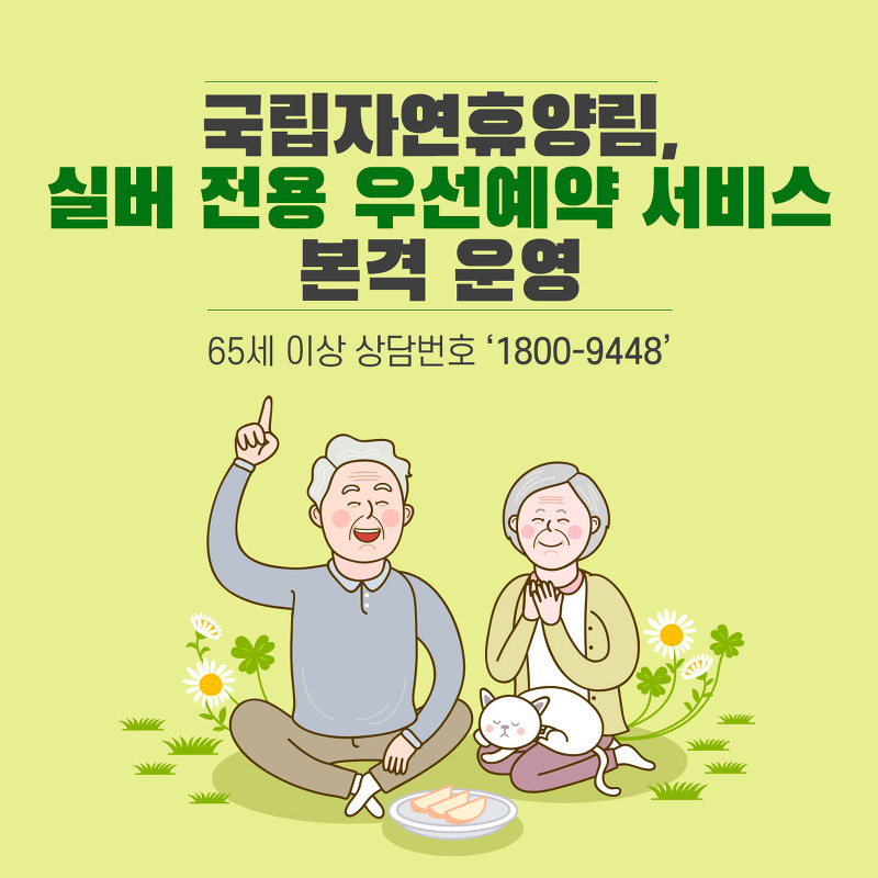 ✅ 65세 이상 숲나들e회원을 대상으로 실버전용우선예약을 실시합니다. (월 1회에 한하여 신청 및 추첨 가능)