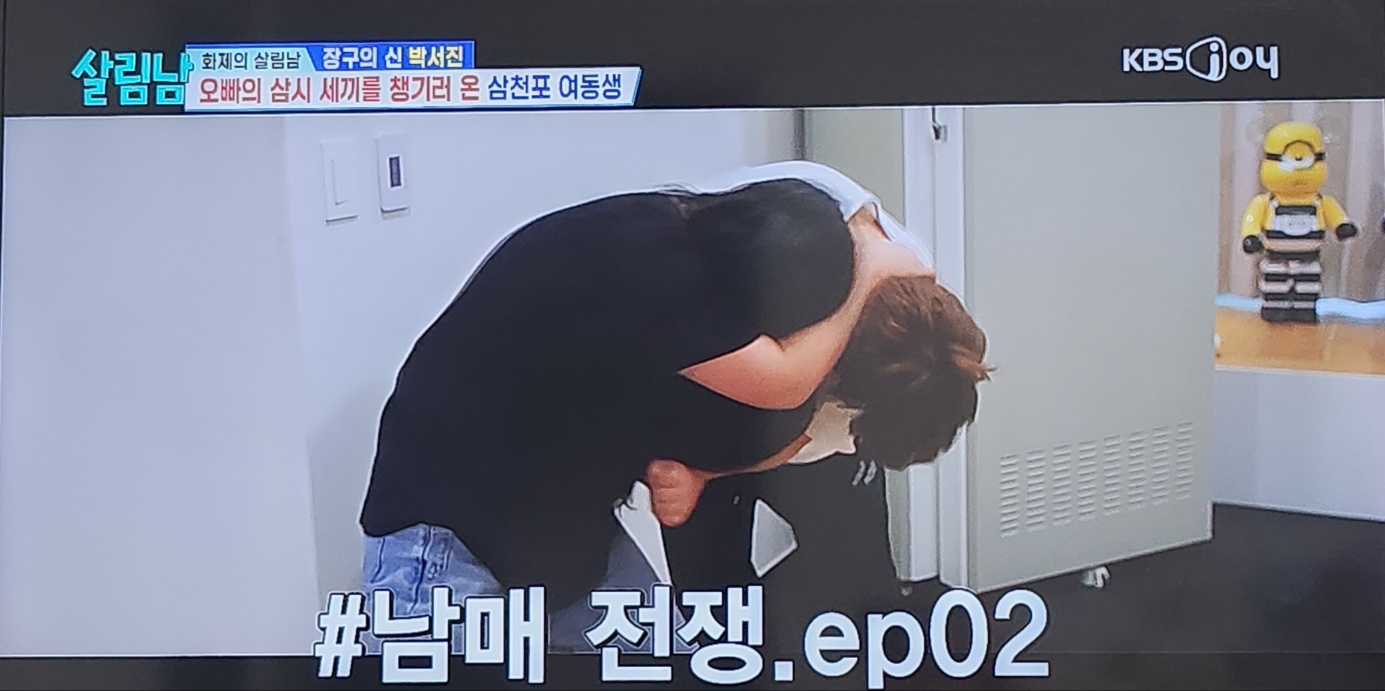 엄마의 특명을 받고 일당 5만 원에 오빠 박서진을 챙기고 돌보러 온 것이었습니다. 박서진이 평소에 끼니를 잘 챙겨 먹지 않고 이 날도 콜라 한잔으로 아침을 때우기도 했는데 아마 평소에 이런저런 부실한 먹거리 습관이 동생의 방문을 앞당긴 이유였지 않나 싶습니다.
