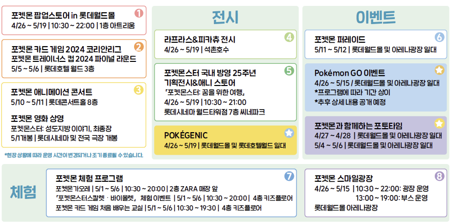 숫자와 아래 내용을 참고하시어 일정을 짜보시면 좋을 것 같습니다. 포켓몬은 어른, 아이 할 것 없이 남녀노소 모두에게 사랑을 받고 있는 캐릭터입니다. 기업에서 전시를 비롯해서 많은 협업하에 만들어낸 결과이기 때문에 이보다 더 좋은 기회는 없을 듯합니다.