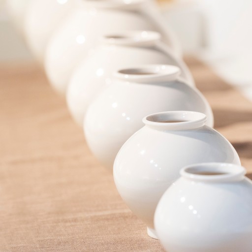 청송백자는 16세기부터 20세기 중반까지 500여 년의 역사를 지난 조선 후기 4대 민요 중 하나로 조선시대를 대표하는 서민 생활 도자기입니다. 장인의 혼과 느림의 미학으로 500년의 숨결을 담아 전통 도자의 가치를 뛰어넘는 계기가 되셨으면 좋겠습니다.